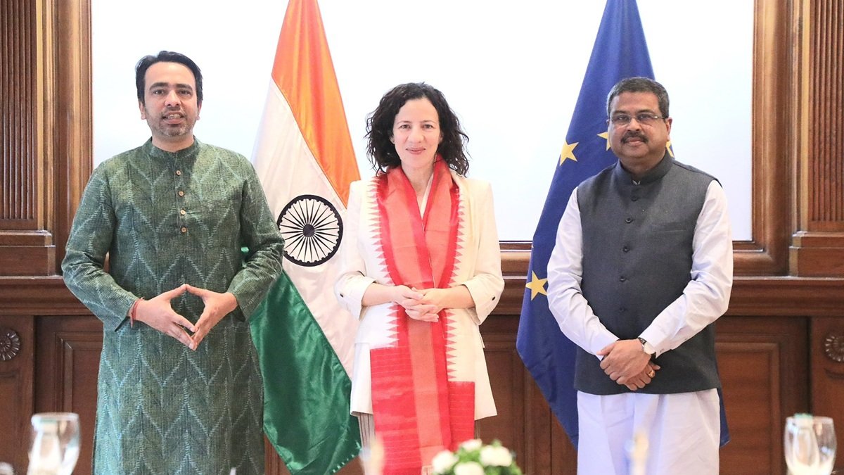 धर्मेंद्र प्रधान और जयंत चौधरी ने यूरोपीय आयोग की उपाध्यक्ष से की मुलाकात, रिसर्च और स्किल डेवलपमेंट पर हुई चर्चा